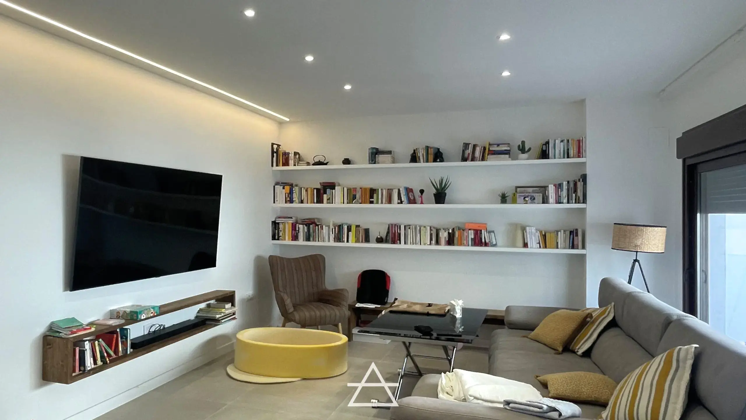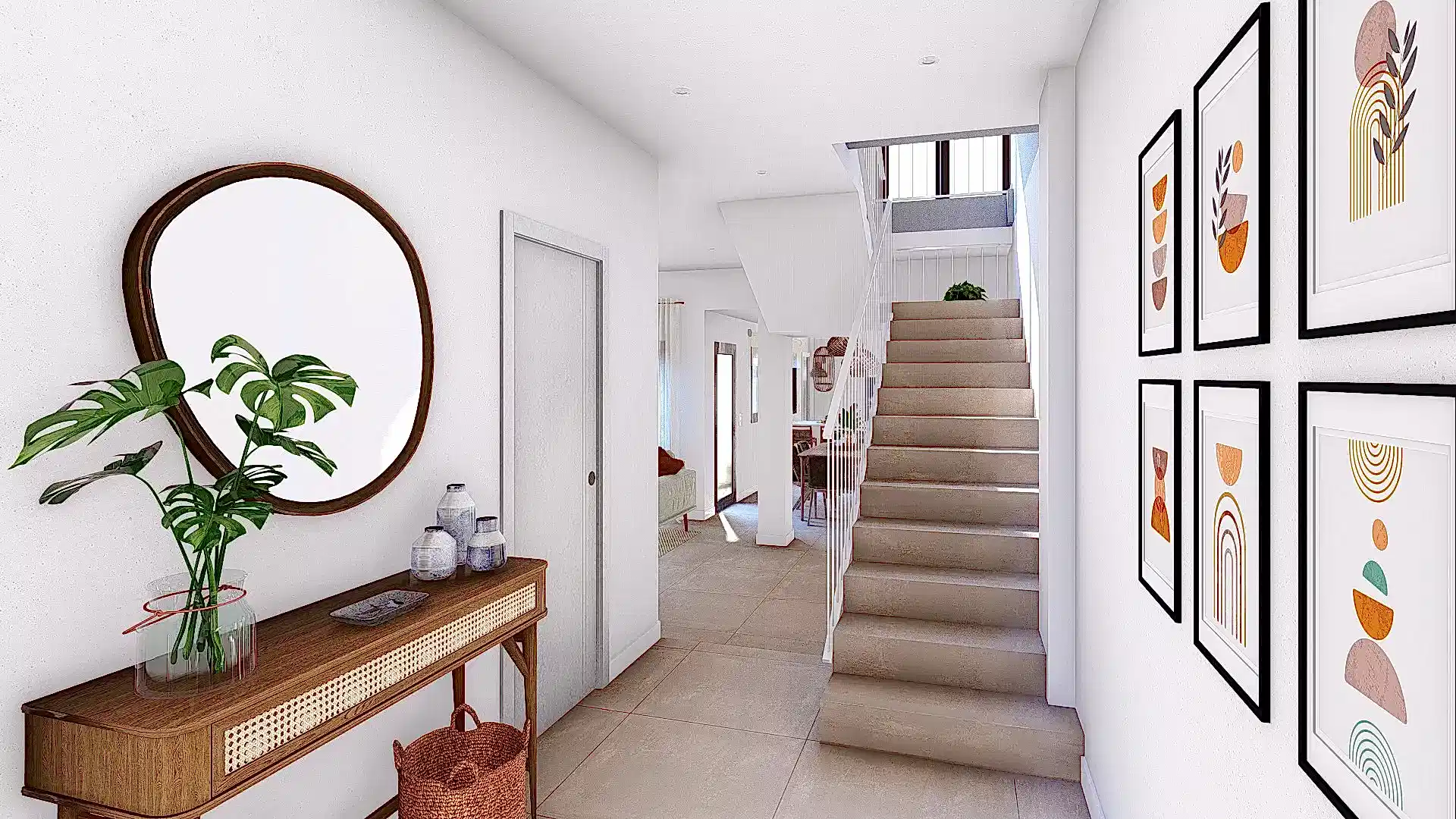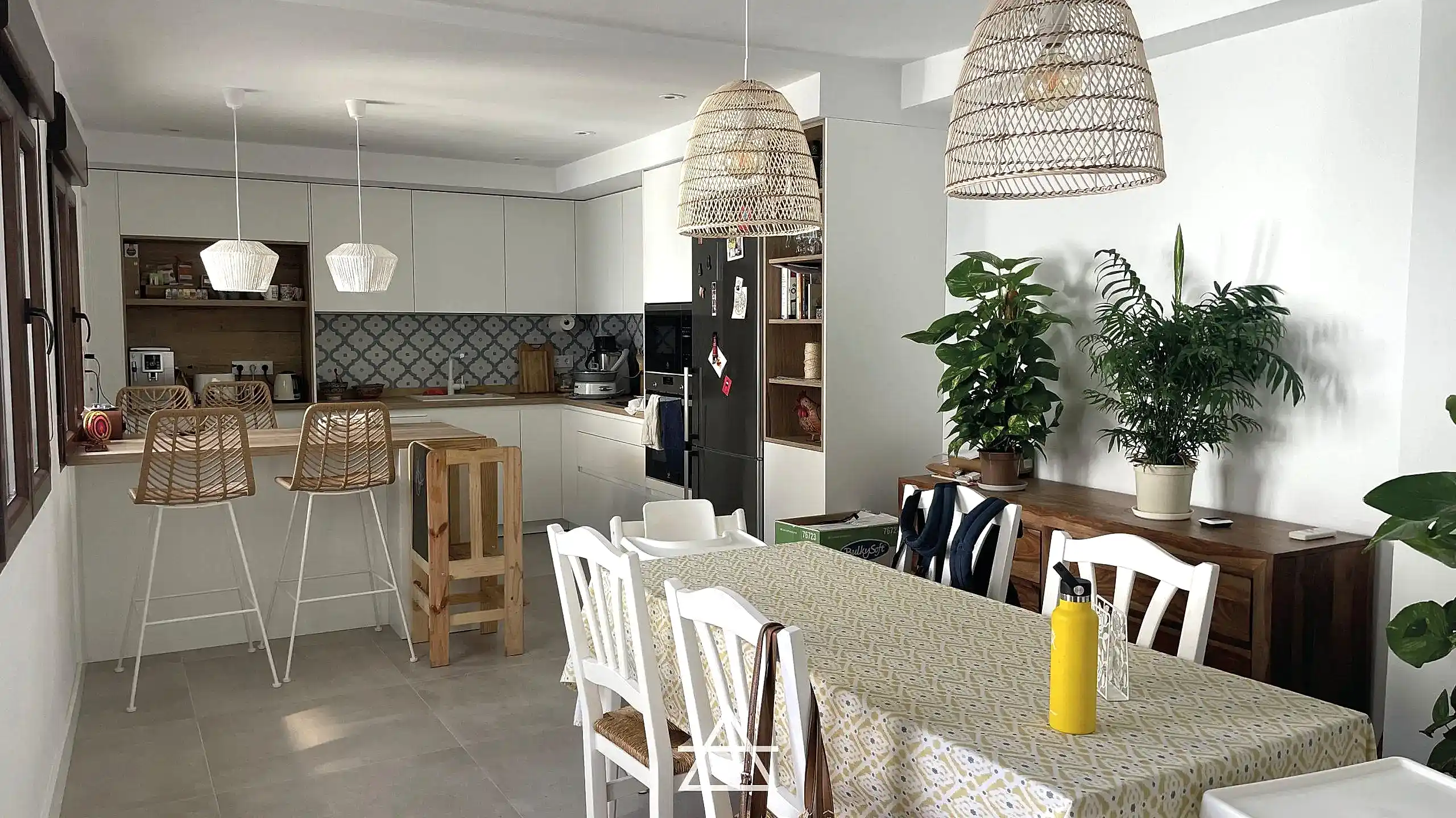 Todo ello se complementa con un diseño actual donde predominan la madera y las fibras naturales y en el que se integra un nuevo sistema de calefacción y refrigeración por aerotermia, consiguiendo un gran confort para sus propietarios y aumentando la eficiencia energética de la vivienda.