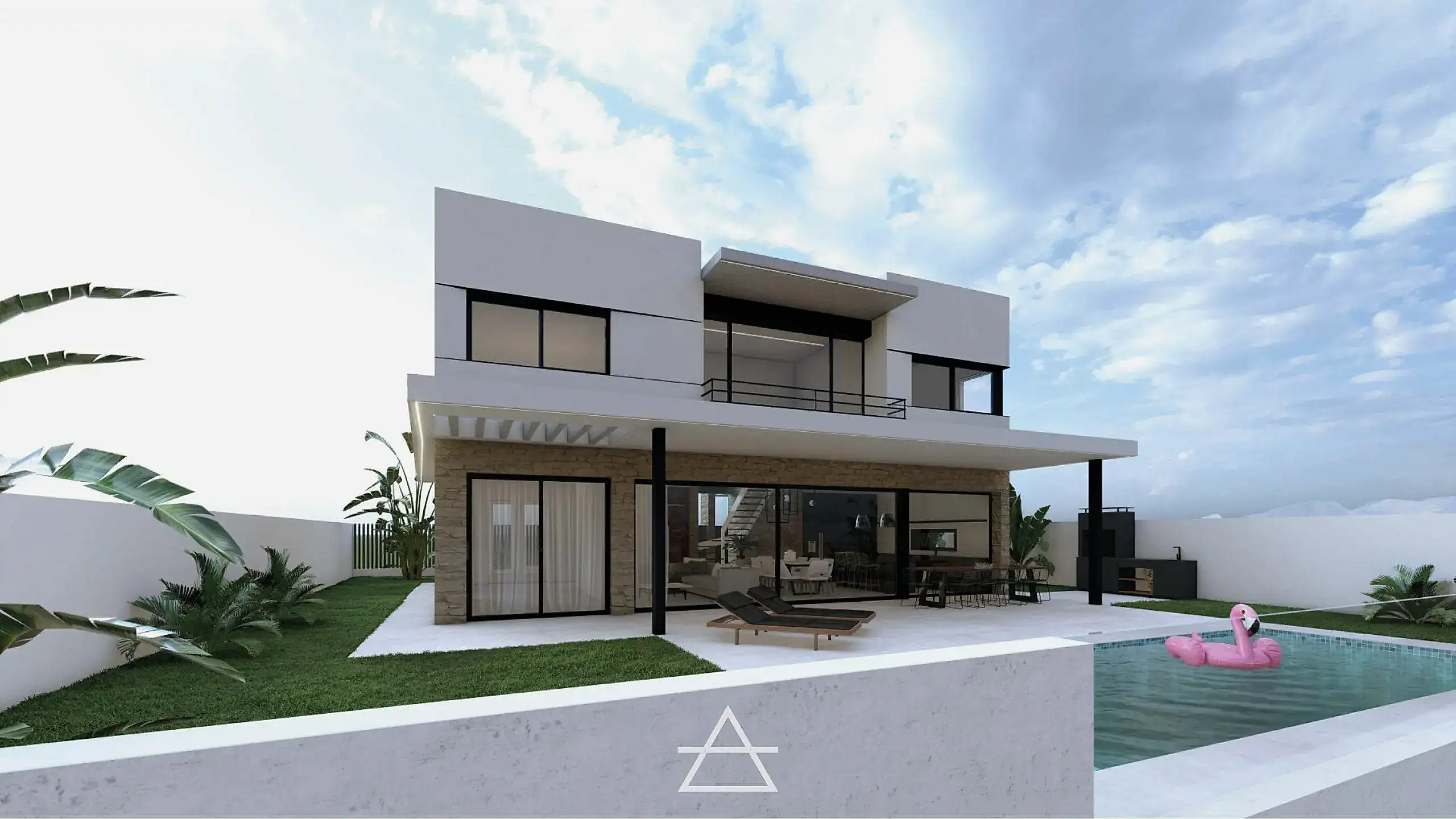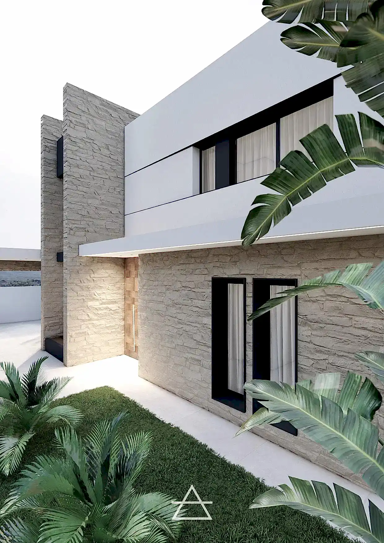 El proyecto parte de una volumetría moldeada por su contexto, donde destacan unas imponentes vistas hacia Sierra Nevada y la vega de Granada. A su vez, se le da respuesta a criterios paisajísticos, funcionales y estéticos, destacando el uso de la piedra mallorquina que contrasta con el resto de volúmenes blancos y puros de la vivienda.